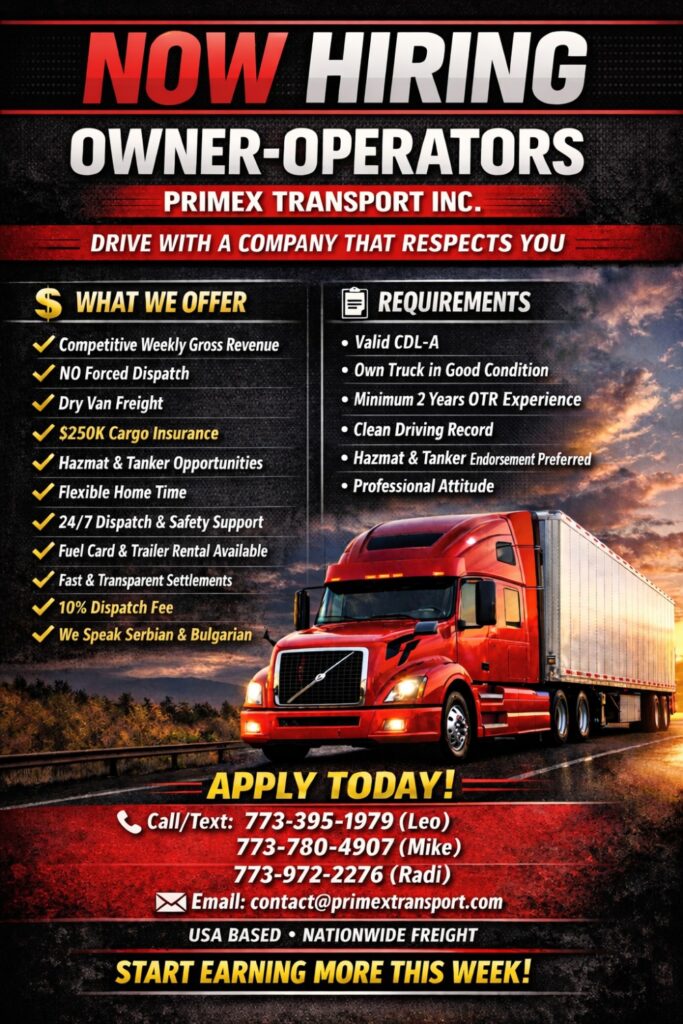 Primex Transport Inc. is actively seeking reliable Owner Operators to join our growing fleet.