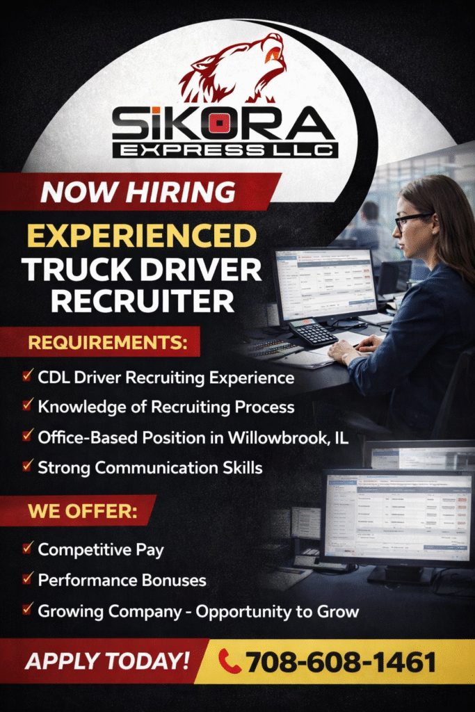 Sikora Express is looking for an experienced Driver Recruiter to join our team on-site at our office in Willowbrook, IL.